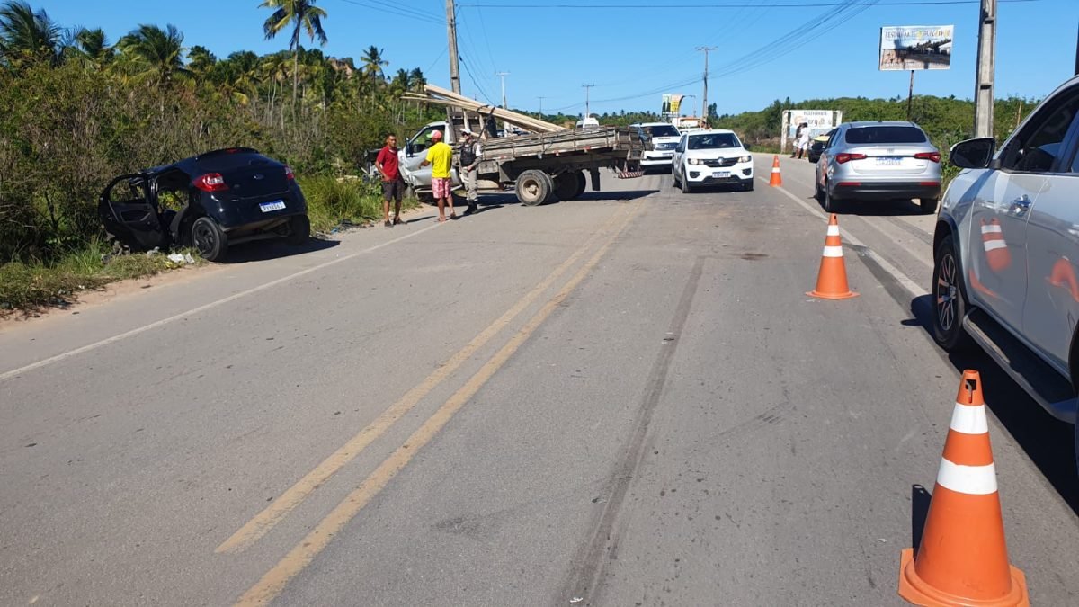 Um homem de aproximadamente 35 anos ficou preso às ferragens e gravemente ferido no começo da tarde deste domingo (7), depois que o veículo de passeio que ele conduzia colidiu frontalmente contra um caminhão, nas proximidades de Barra Grande, em Maragogi, litoral Norte de Alagoas.