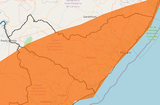Na tarde deste domingo (11), o Instituto Nacional de Meteorologia (Inmet) ampliou o aviso de chuvas intensas para Alagoas, que entrou em alerta de perigo até esta segunda-feira (12). Há previsão de rajadas de ventos em 97 municípios do estado.