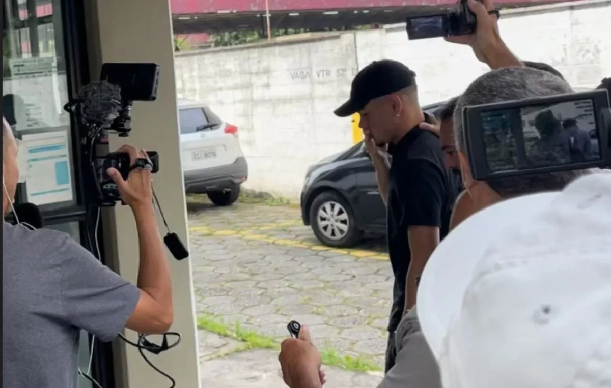 Corintiano Dimas Cândido chegou às 10h30 à 5ª DDM de São Paulo; segundo defesa, atleta está fragilizado e “também precisa de cuidados”