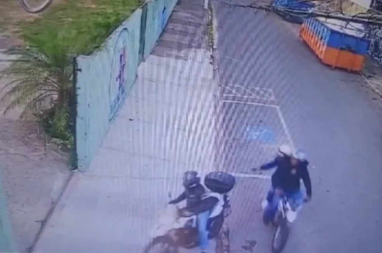 As imagens mostram o momento em que Michel chega à escola e é abordado por dois criminosos em uma moto. Um dos indivíduos atira nas costas do professor, que não teve a chance de reagir.