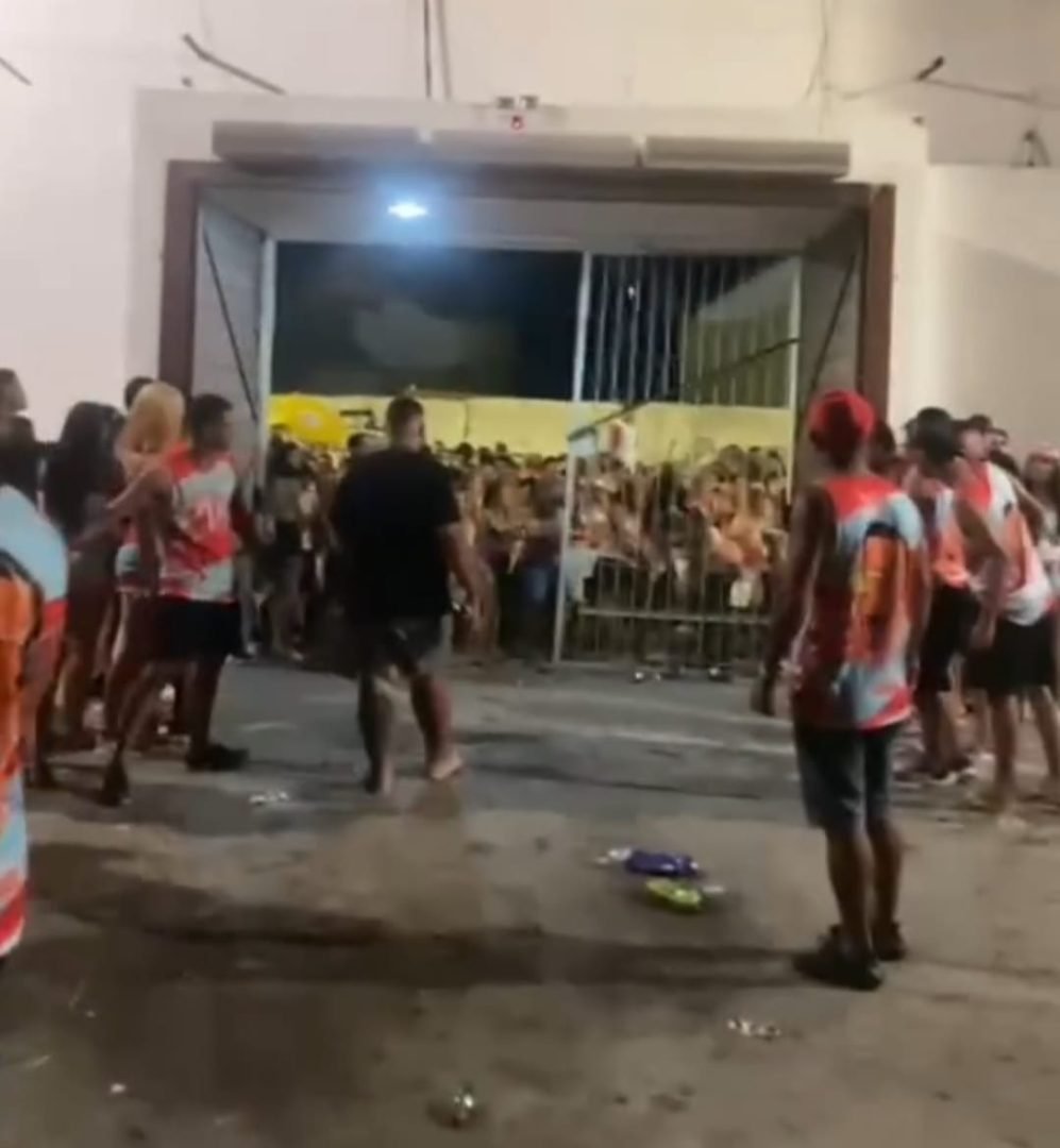 Imagens compartilhadas nas redes sociais mostram foliões revoltados, gritando e tentando forçar a entrada no estabelecimento onde a festa deveria continuar. Segundo informações preliminares, a confusão teve início quando o público descobriu que o show não aconteceria, devido à superação da capacidade de lotação do local e à presença de menores de idade.