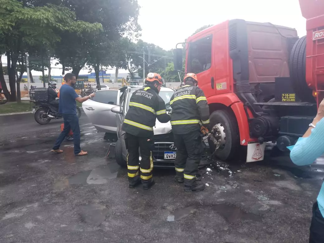 Na manhã desta sexta-feira, 14 de março, um grave acidente causou congestionamento e mobilizou equipes de resgate no bairro Tabuleiro do Martins, na parte alta de Maceió. Uma mulher ficou presa às ferragens após uma colisão envolvendo um veículo, um ônibus e um caminhão, na Avenida Durval de Góes Monteiro, um dos principais acessos da região.