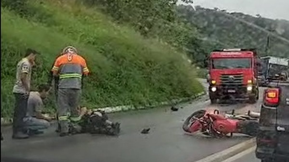 Imagens registradas por testemunhas mostram o impacto da colisão e o momento em que equipes de socorro prestam assistência ao jovem.