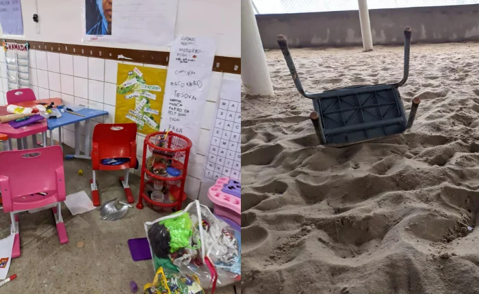 De acordo com relatos da equipe escolar, tinta foi espalhada pelo chão, brinquedos e carteiras estavam revirados, e diversos itens de uso pedagógico foram danificados ou levados. A sala afetada precisou ser interditada para limpeza e reorganização, realizadas pelos próprios servidores.