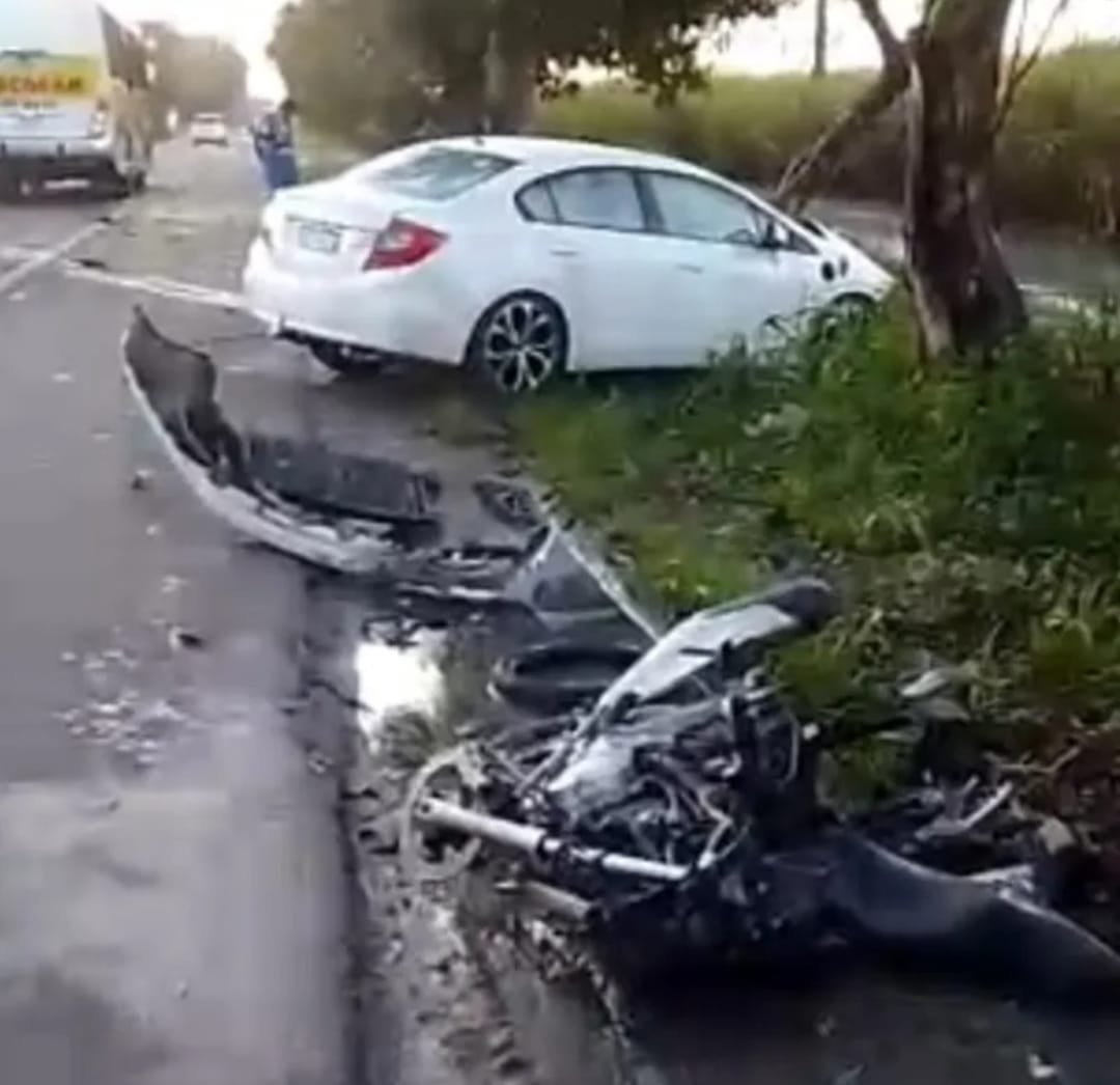 De acordo com as informações preliminares, a violência do impacto destruiu completamente a motocicleta. O corpo do condutor foi encontrado no acostamento, próximo aos destroços do veículo de duas rodas. Já o carro envolvido teve a parte dianteira bastante danificada, indicando a força da colisão.