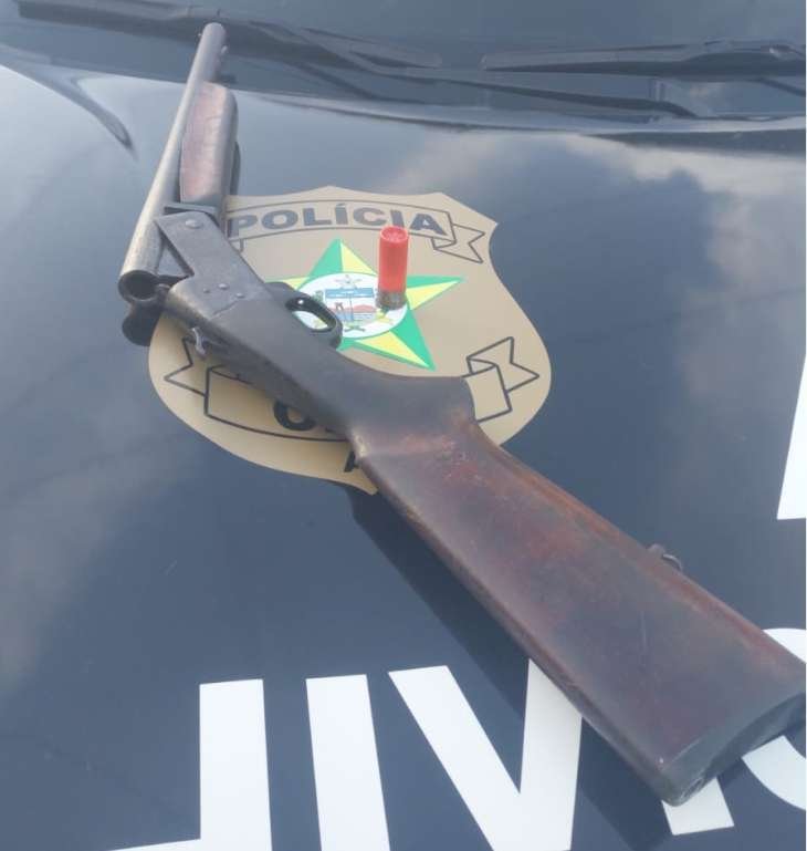 Ela foi localizada no bairro Baixa da Sapa, onde os policiais encontraram uma espingarda calibre 12, municiada, além de uma motocicleta usada no transporte do armamento.