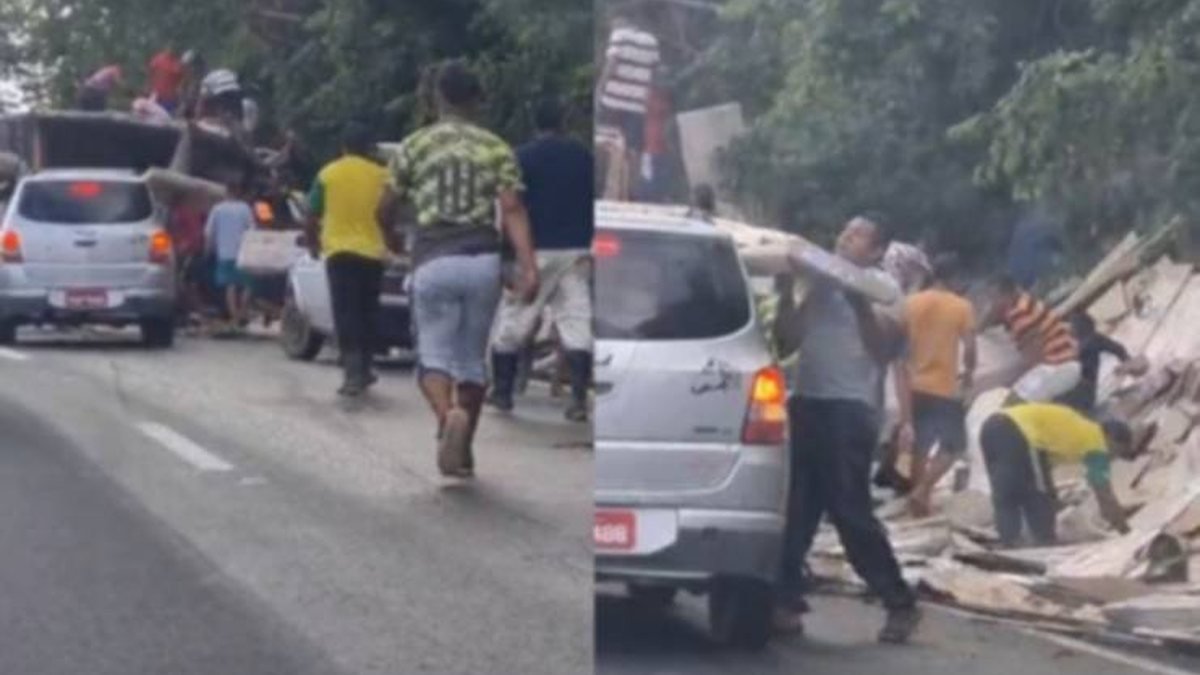 O acidente foi registrado em vídeo por uma passageira que filmava enquanto passava pela área. Nas imagens, é possível ver um grupo de pessoas retirando móveis da carreta tombada, incluindo armários e guarda-roupas, com as caixas ainda lacradas. Vários veículos estavam parados ao redor do caminhão, sugerindo que muitos dos itens foram transportados com a ajuda desses carros. Um dos automóveis, inclusive, estava com ao menos cinco peças de móveis cobertas por papelão em sua mala.