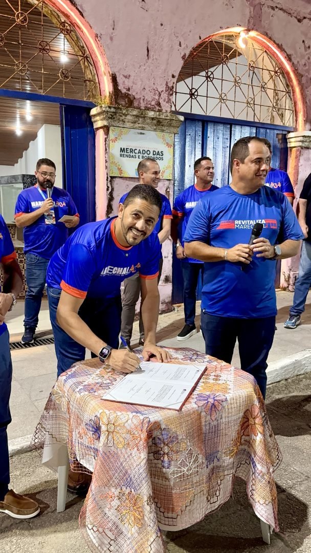 O vereador Marcelo Moringa participou de um momento de grande importância para a cultura deodorense: a assinatura da ordem de serviço para a revitalização do Mercado do Artesanato, localizado no coração do Centro Histórico de Marechal Deodoro.