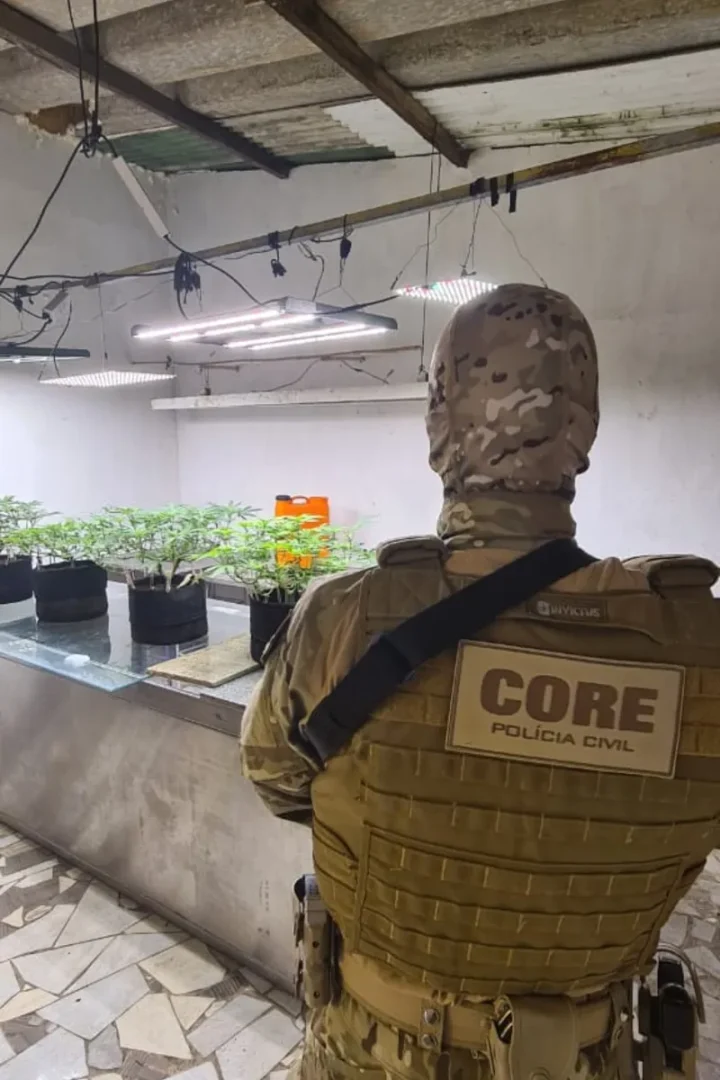 Segundo informações da corporação, o espaço era dividido em dois cômodos adaptados exclusivamente para a atividade ilegal. O local funcionava como uma estufa do tipo indoor, conhecida como “grow”, com estrutura planejada para o desenvolvimento da planta em diferentes fases de crescimento.