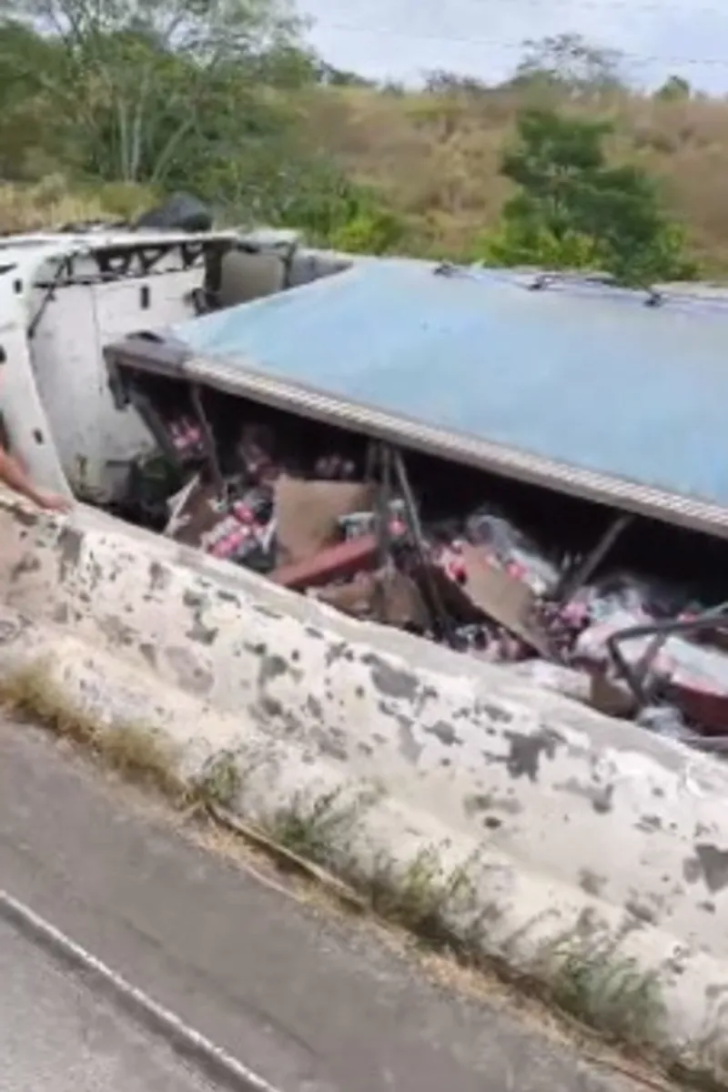 O acidente aconteceu em uma curva, quando o condutor perdeu o controle do veículo, fazendo com que o caminhão tombasse e sua carga se espalhasse pela pista. Testemunhas que passavam pela rodovia no momento do incidente registraram imagens do caminhão tombado no acostamento, com garrafas de refrigerante espalhadas pela via.