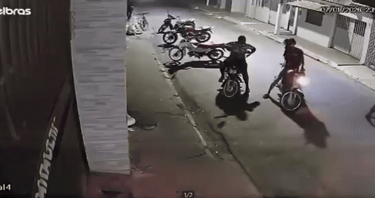 Câmeras de segurança flagraram a ação, e suspeitos chegaram e fugiram em duas motocicletas
