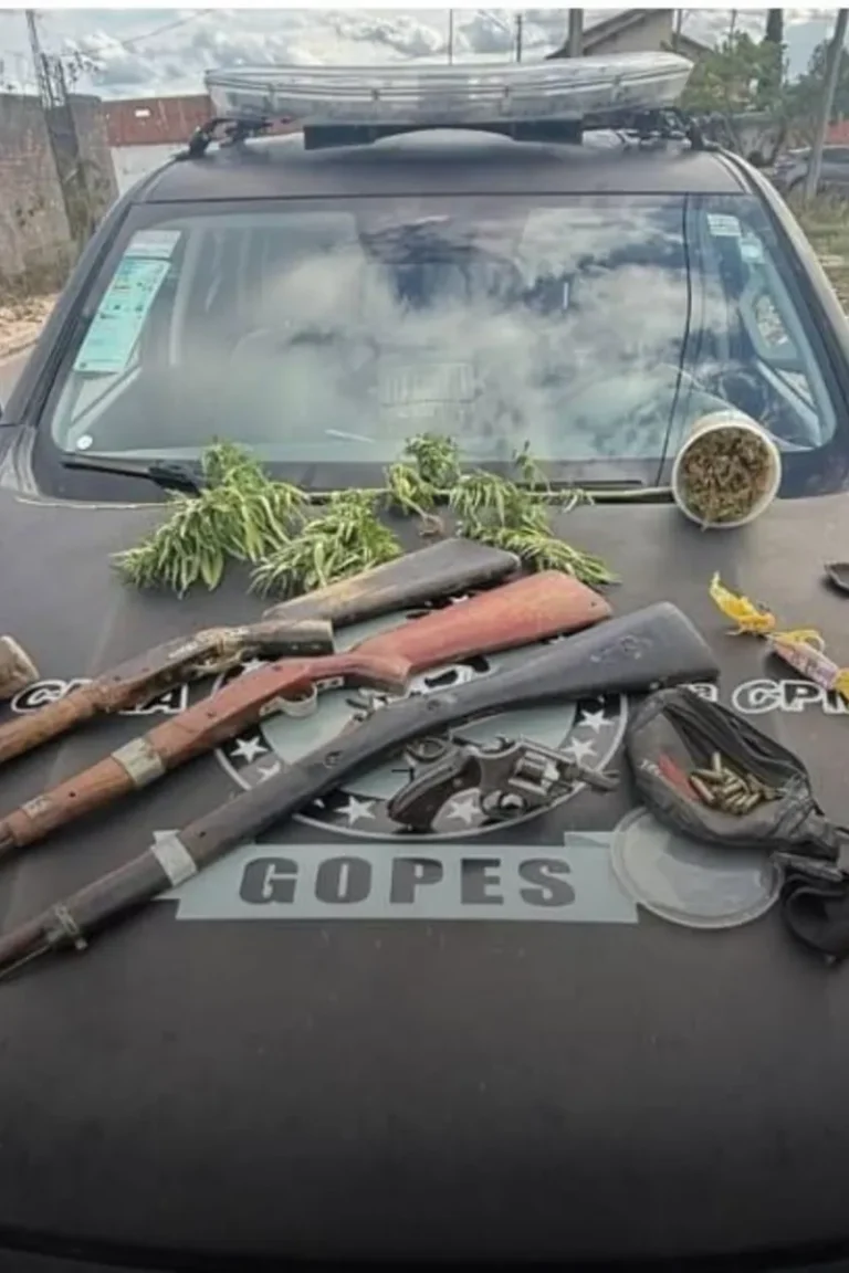 Segundo informações da corporação, a ocorrência resultou na apreensão de substâncias entorpecentes, materiais relacionados à comercialização de drogas e também de armamento. A ação integra o planejamento operacional voltado ao reforço da segurança pública durante as festividades de Carnaval.