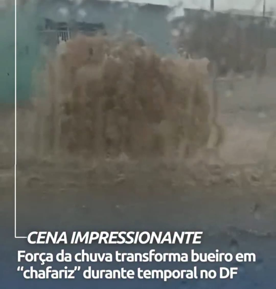 Vídeo registrado por moradora mostra água jorrando de bueiro após chuva intensa no Distrito Federal