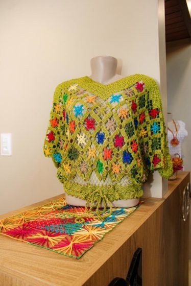 Ao todo, foram apresentados 15 looks, sendo três criações de cada associação, construídos a partir de peças como suplás, caminhos de mesa, jogos americanos e toalhas, que ganharam novos significados por meio de uma curadoria que transformou o artesanal em expressão contemporânea, contando histórias e fortalecendo a identidade cultural local.