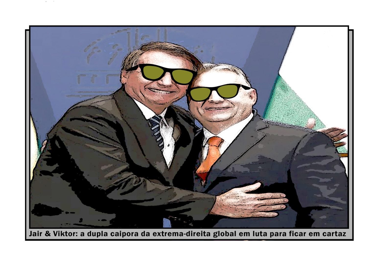 SER AMIGO DE TRUMP E DE PUTIN ao mesmo tempo é como levar tiros de sal de uma escopeta cano duplo. Viktor Orban era ligado aos dois. Outra desmoralização pesando sobre ele é ser próximo da gangue brasileira-estadunidense The Bolsonaro’s. Em abril de 2019, o primeiro-ministro húngaro recebeu Dudu Bananinha para conversar potoca, num convescote de energúmenos. Em 17 de fevereiro de 2022, Jair B, no ocaso de sua despresidência, voou até Budapeste para se abraçar com Orban e soluçar: “Prezado Orban, o trato como irmão, dada a afinidade que temos”. Em março de 2024, com as investigações da Polícia Federal dele se aproximando, Jair, experimentando uma rota de fuga, dormiu durante duas noites na Embaixada da Hungria, em Brasília. Viktor e Jair foram uma dupla caipora. Como se sabe, a caipora é figura mitológica brasileira que, pela crença indígena, dá azar a quem a enxerga ou com ela faz contato.