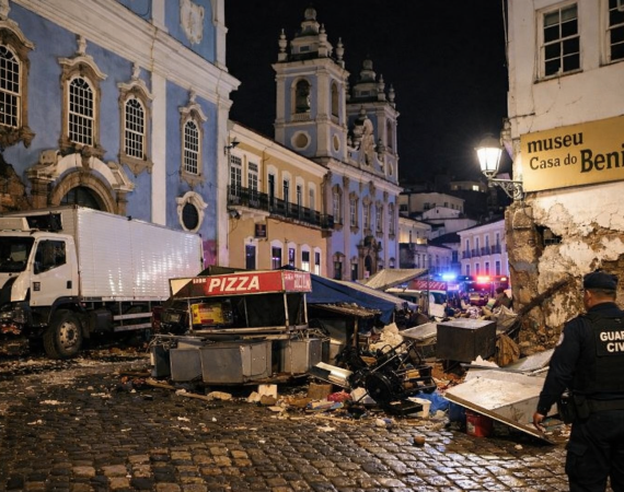 Um caminhão desgovernado provocou momentos de tensão no Centro Histórico de Salvador, na madrugada deste domingo (22). O veículo perdeu o controle ao descer o Largo do Pelourinho e acabou colidindo contra dois importantes patrimônios culturais da capital baiana: a Igreja de Nossa Senhora do Rosário dos Pretos e o...