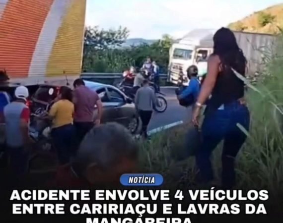 Um acidente envolvendo quatro veículos provocou a interdição total de um trecho da CE-060, conhecida como Rodovia Padre Cícero, na tarde desta sexta-feira (10), no município de Caririaçu. De acordo com informações preliminares, a colisão aconteceu no sentido que liga Caririaçu a Lavras da Mangabeira e envolveu uma carreta, uma...