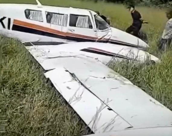 Avião faz pouso de emergência e fica danificado em área rural de Trindade