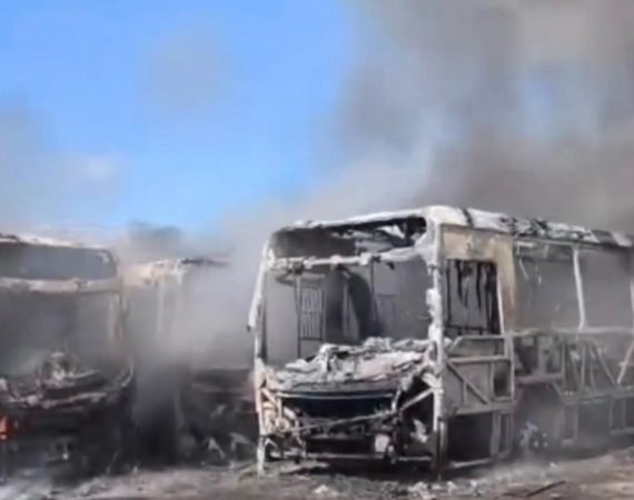 Incêndio atinge garagem de transportes e destrói ônibus na Região Metropolitana de Salvador