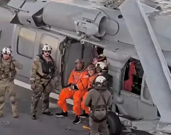 Astronautas da Artemis II deixam cápsula Orion após pouso no Pacífico