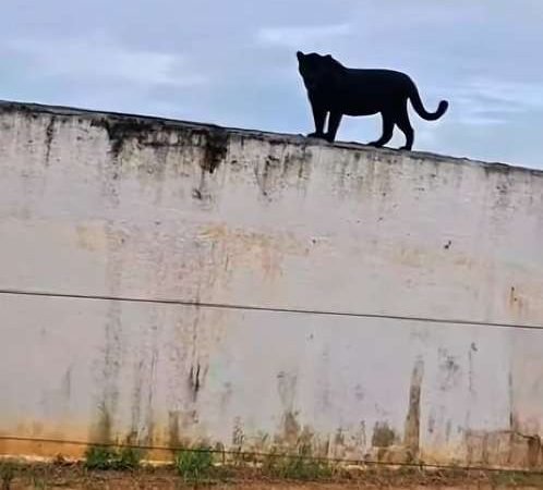 Uma onça-pintada com melanismo — popularmente conhecida como onça-preta ou “pantera negra” — foi flagrada em uma situação inusitada na Fazenda Roncador, localizada em Querência, a 912 quilômetros de Cuiabá, no Mato Grosso. O registro, que passou a circular nas redes sociais neste sábado, mostra o felino posicionado no alto...