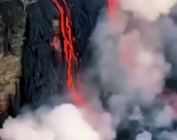 Erupção vulcânica cria espetáculo ao atingir o mar na Ilha de Reunião