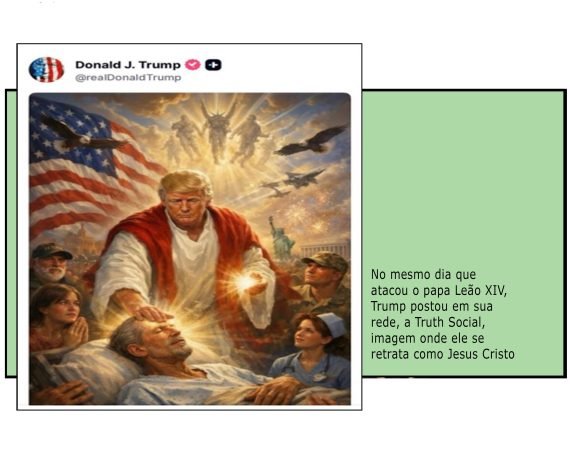 TRUMP ENDOIDOU? Atacar o Papa e insinuar-se como Jesus – ousando postar-se numa imagem como Cristo em trajes alvirrubros (sua cor partidária, dos Republicanos) – não são atitudes de quem se proclama conservador e defensor dos valores cristãos. Isto porque Leão XIV criticou a guerra e pediu para que Estados Unidos,...
