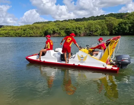 Bombeiros retomam buscas por homem que sumiu após pular de catamarã