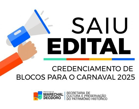 A Prefeitura Municipal de Marechal Deodoro, por meio da Secretaria Municipal de Cultura e Preservação do Patrimônio Histórico, anunciou a abertura do edital para apoio dos blocos que irão participar do Carnaval do município em 2025. Os interessados devem se dirigir à sede da secretaria, na Casa Câmara e Cadeia,...