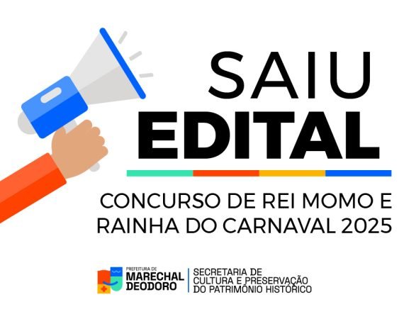 A Prefeitura Municipal de Marechal Deodoro, por meio da Secretaria Municipal de Cultura e Preservação do Patrimônio Histórico, anunciou a abertura do edital para o concurso de Rei Momo e Rainha do Carnaval do município em 2025. Os interessados devem se dirigir à sede da secretaria, na Casa Câmara e...