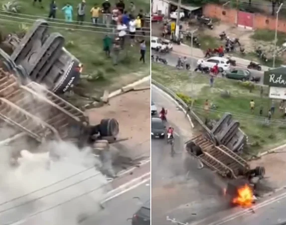 O fim de tarde desta quinta-feira (19) foi marcado por tensão e longas filas de veículos na região Norte de Maceió. Uma carreta que transportava uma retroescavadeira tombou e acabou sendo consumida pelas chamas em um trecho da AL-101 Norte, conhecido como Rota do Mar, nas proximidades do bairro de...
