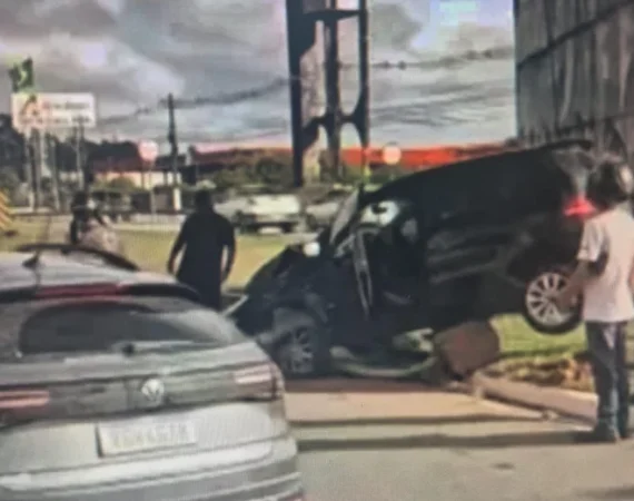 Carro colide contra estrutura e fica parcialmente destruído na Avenida Durval de Góes Monteiro