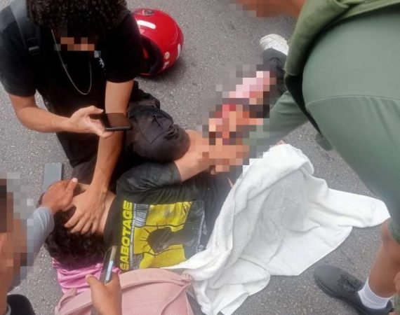Grave colisão entre micro-ônibus e moto deixa jovem com fratura exposta em Maceió
