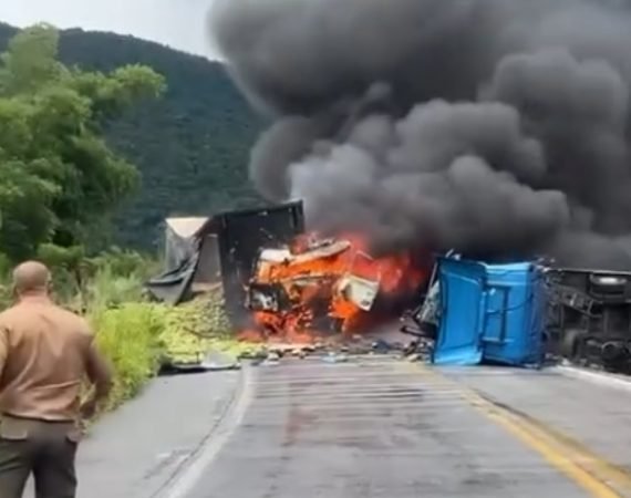 Um grave acidente registrado no início da tarde desta quinta-feira (26) resultou na interdição total de um trecho da BR-101, no norte de Alagoas. Duas carretas colidiram frontalmente na região da Aldeia Wassu Cocal, entre os municípios de Joaquim Gomes e Novo Lino, e foram rapidamente consumidas por um incêndio...