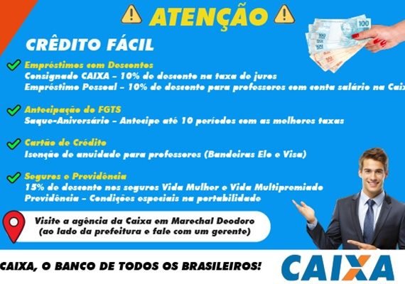 Atenção, SERVIDORES! Benefícios IMPERDÍVEIS na CAIXA de Marechal Deodoro!